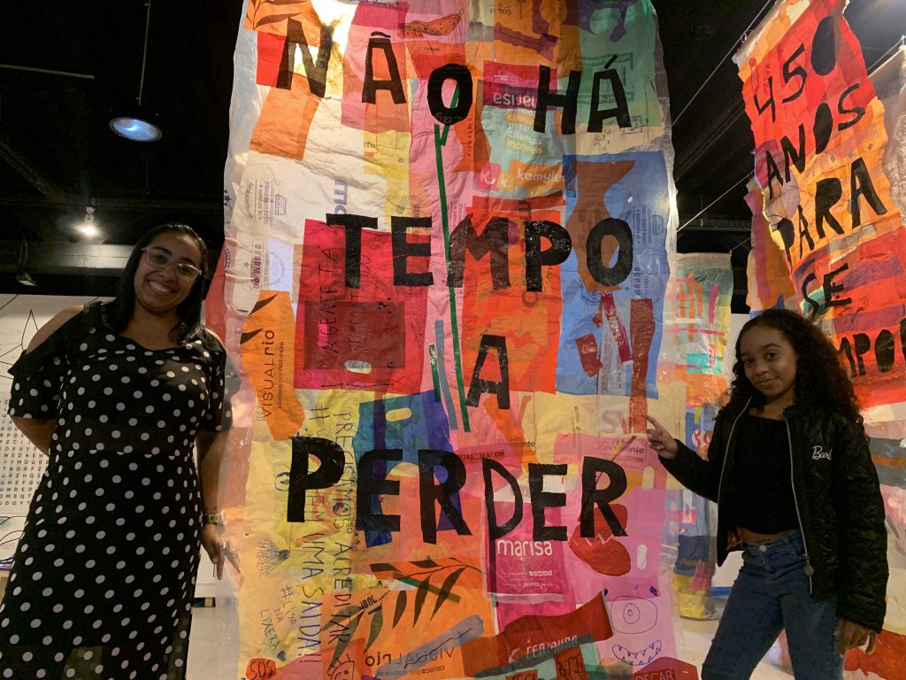 Uma ação especial marcou a participação direta da população local. Moradores de comunidades de Duque de Caxias, muitos deles crianças com seus responsáveis, e integrantes da ONG Crianças para o Futuro participaram da criação de uma grande bandeira feita com sacos plásticos reutilizados, que agora integra a exposição como um símbolo da mobilização social e da urgência ambiental.
