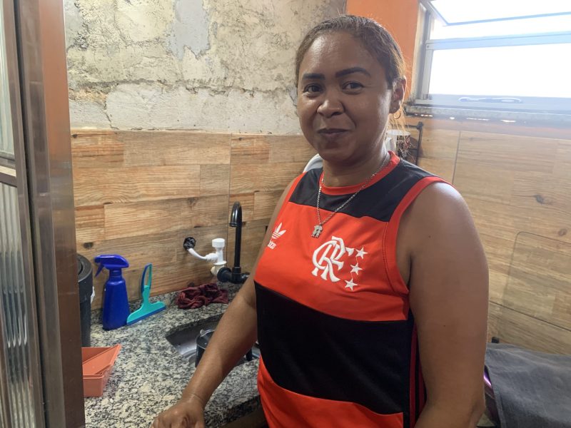 Fernanda Oliveira, moradora da comunidade, finalmente vai concluir a obra da sua futura loja de roupas.