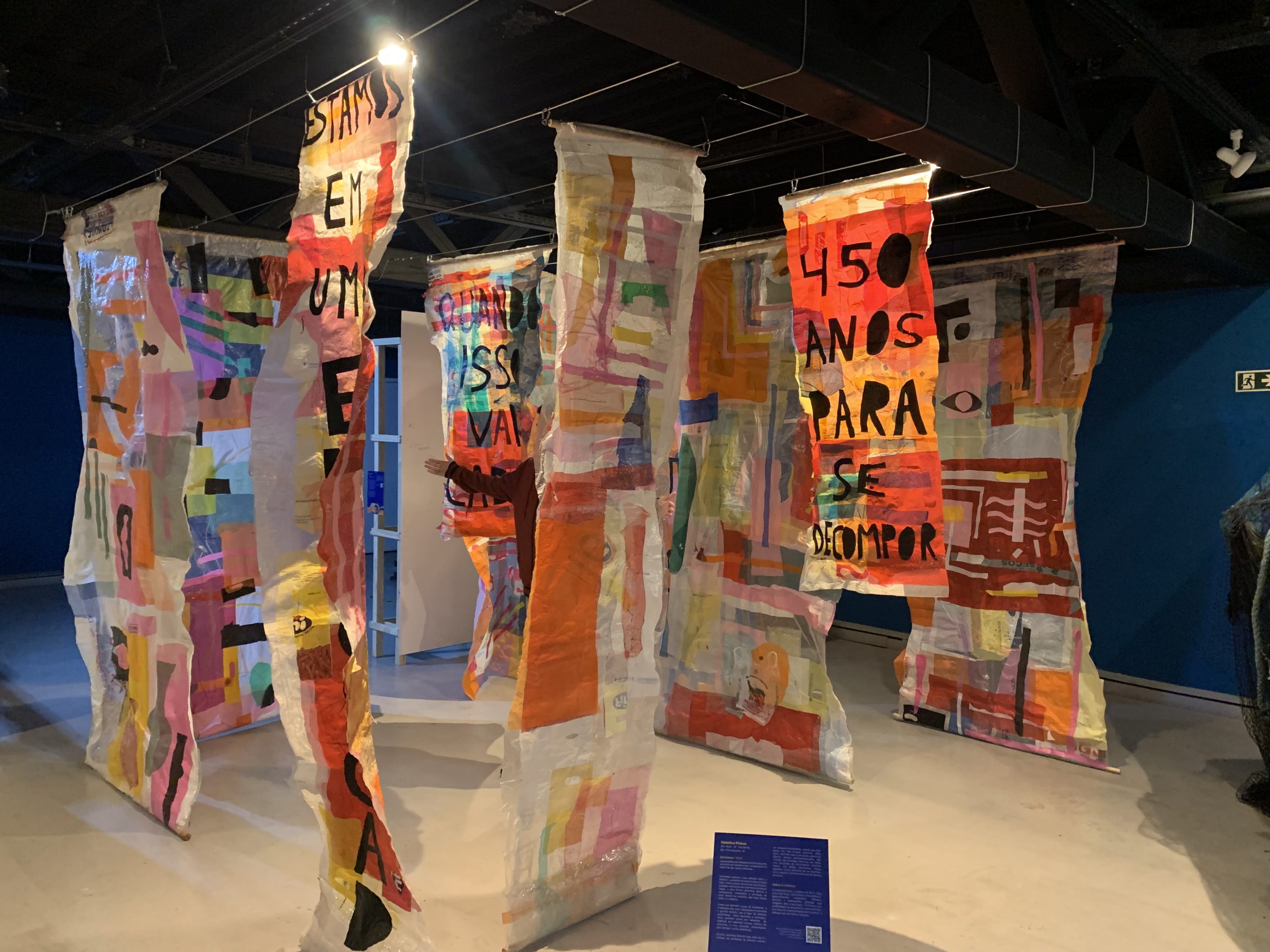 Uma ação especial marcou a participação direta da população local. Moradores de comunidades de Duque de Caxias, muitos deles crianças com seus responsáveis, e integrantes da ONG Crianças para o Futuro participaram da criação de uma grande bandeira feita com sacos plásticos reutilizados, que agora integra a exposição como um símbolo da mobilização social e da urgência ambiental.