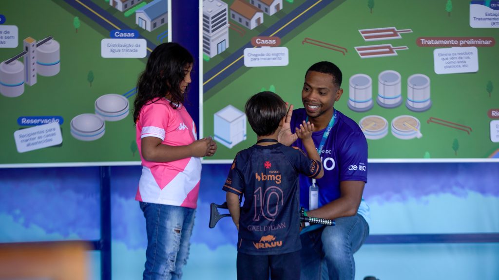 Além de contribuir com o meio ambiente por meio dos copos reutilizáveis, a concessionária também preparou ações de conscientização voltadas para toda a família, como jogos educativos, painéis explicativos e interações com a equipe. As crianças foram as protagonistas no espaço e contaram com brincadeiras e a presença do mascote “Azulino”, que tirou fotos, distribuiu mais de cinco mil revistinhas e falou sobre o cuidado com a água e a natureza.