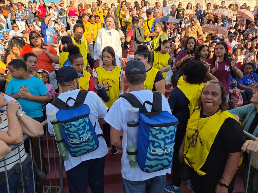 Hidratação, fé e tradição marcaram a celebração de Corpus Christi em São Gonçalo, que reuniu cerca de 100 mil pessoas no Centro da cidade. Com apoio da Águas do Rio, o evento levou cor, espiritualidade e solidariedade às ruas, onde cerca de 240 tapetes foram confeccionados por cerca de 30 paróquias, escolas e comunidades católicas. Para ajudar o público a enfrentar o calor durante as quase 14 horas de programação, a concessionária montou quatro pontos de hidratação nas ruas Coronel Moreira César e Feliciano Sodré e distribuiu mais de 50 mil copos biodegradáveis.