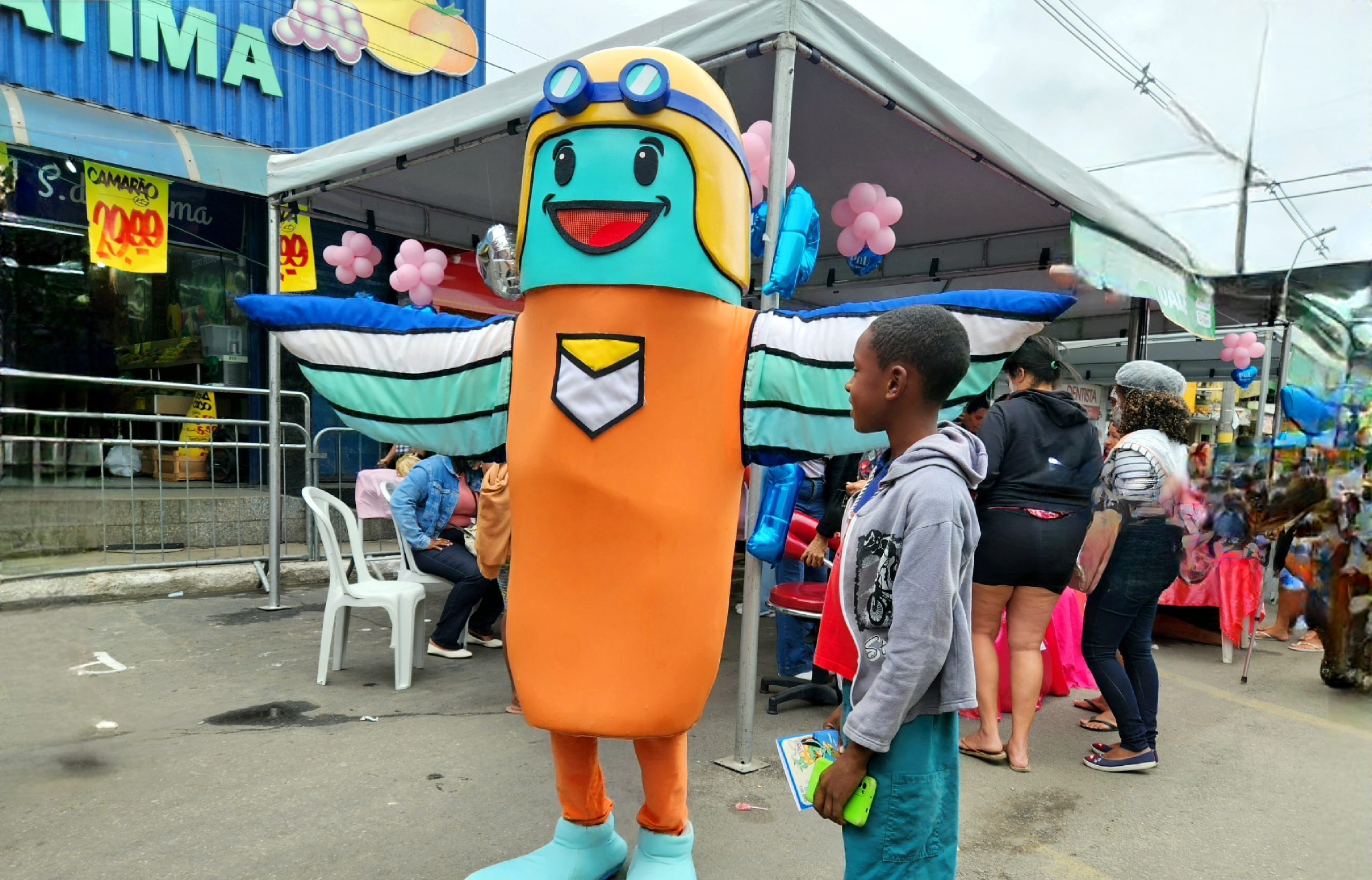 Água gelada para se refrescar, óculos 3D para explorar um mundo diferente e um mascote simpático, o Azulino, que arrancava sorrisos por onde passava. Foi assim a participação da Águas do Rio em mais uma edição do “Meriti Para Todos”, evento itinerante promovido pela Prefeitura de São João de Meriti no bairro Jardim Metrópoles, sábado, dia 9. Além de ações de entretenimento, os visitantes puderam aproveitar para resolver questões comerciais com funcionários da concessionária, como solicitar a segunda via da conta e negociar débitos, sem precisar sair do próprio bairro.