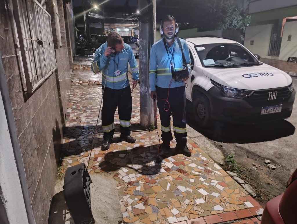 Técnicos da Águas do Rio atuam durante a madrugada usando geofones para localizar vazamentos ocultos em redes subterrâneas da Baixada Fluminense